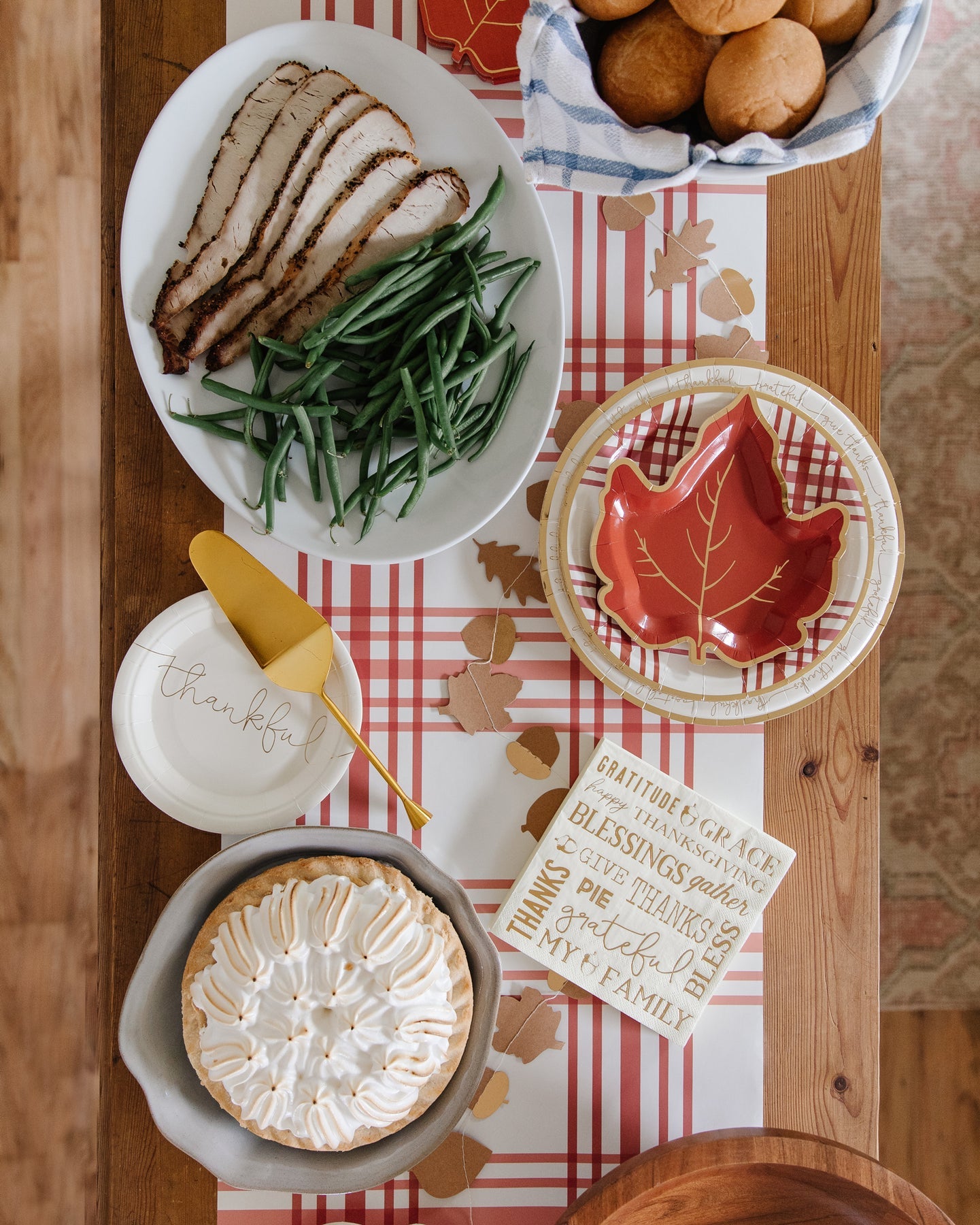 Who says that paper plates can't be upscale? Downtown Friendsgiving to cozy farmhouse family feasts, these plaid paper plates with a touch of gold, will bring a touch of class to your table. And the best part is that there won't be any dishes at the end of the night!