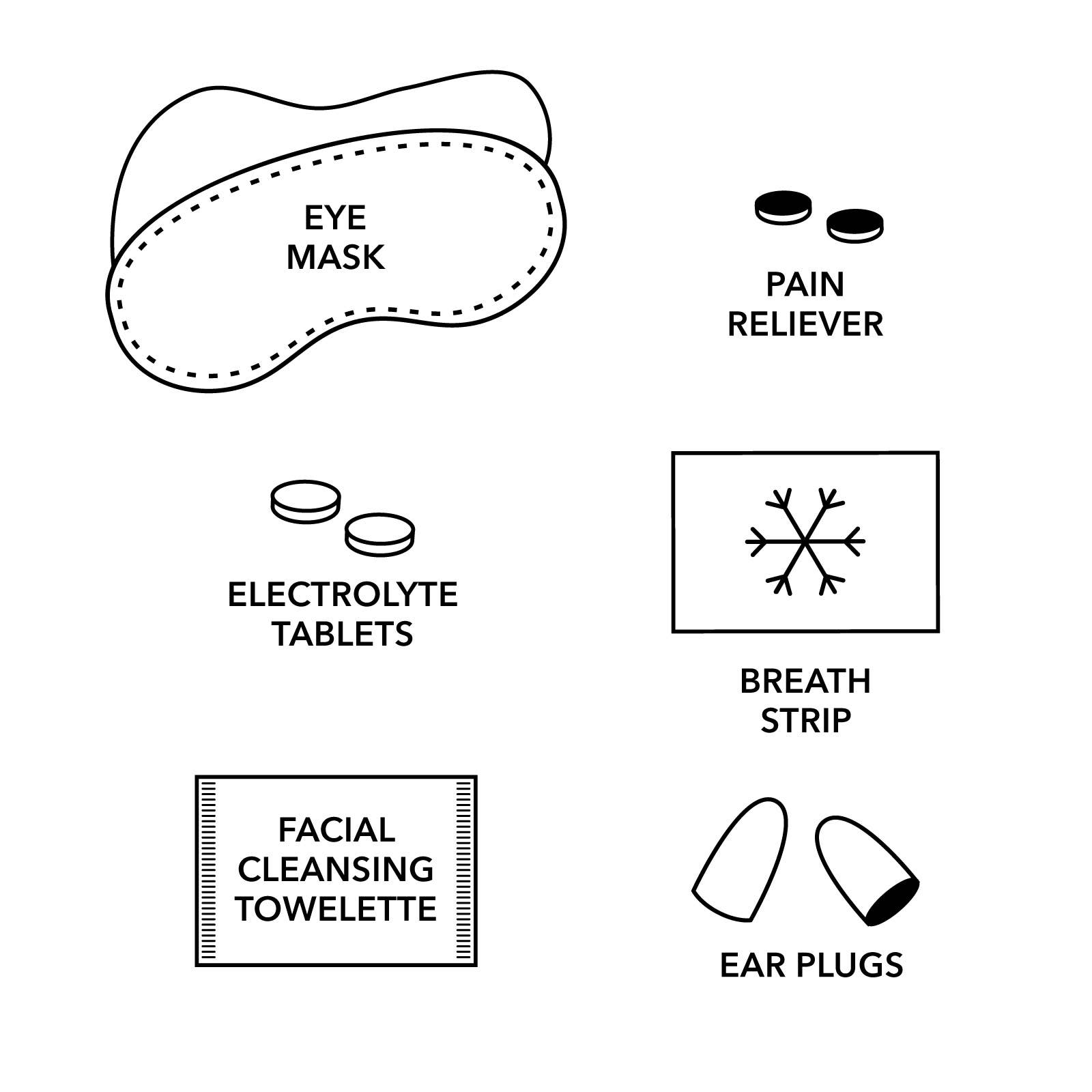 Hooray it's your birthday! Our Hangover Kits are the perfect solution for when you might have one too many during a great celebration. Now in a mini tin size, each kit contains an eye mask, ear plugs, a facial cleansing towelette, pain reliever, electrolytes, and a breath strip.