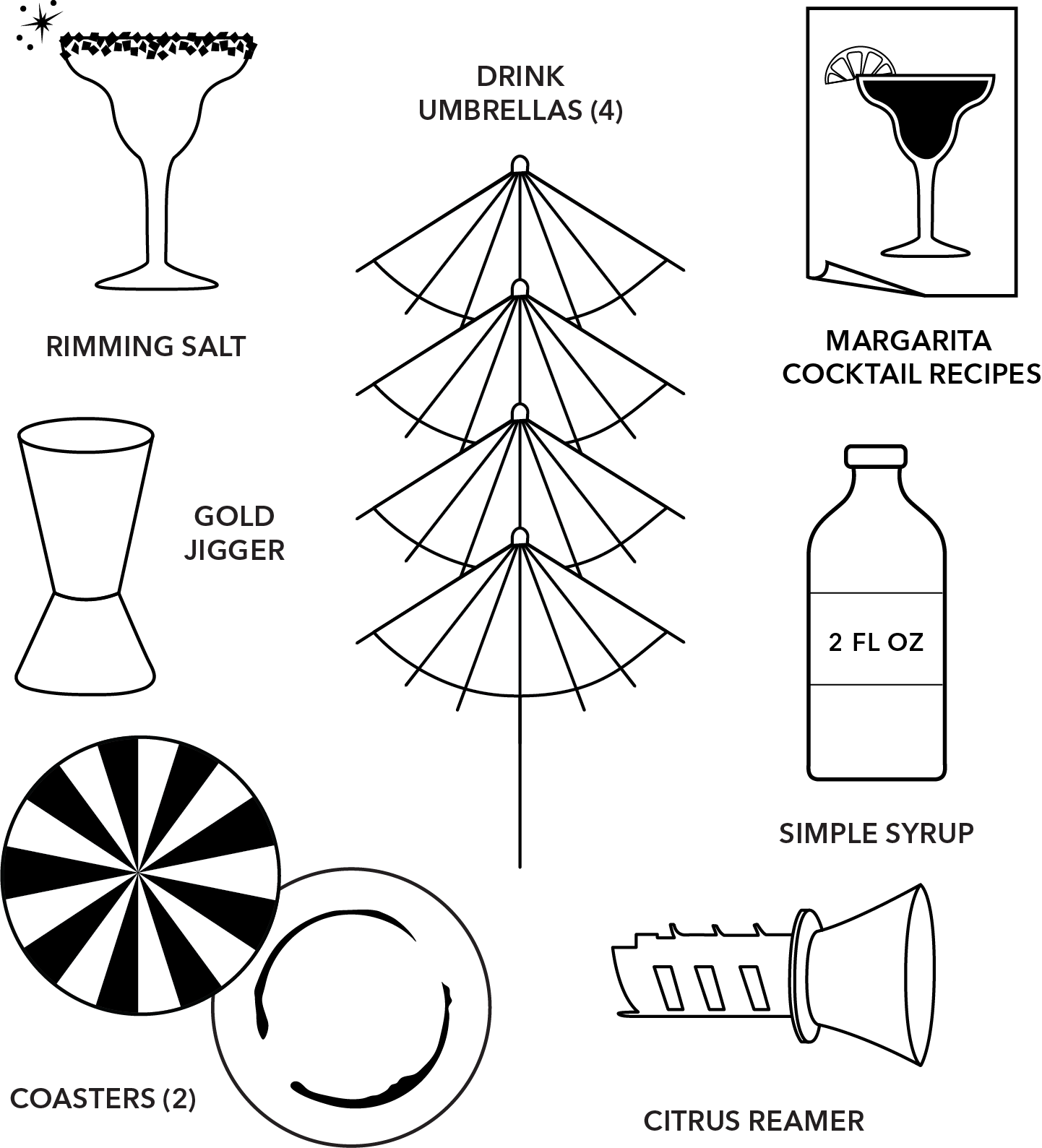 If life gives you limes, make margs with Pinch Provisions new Margarita Cocktail Kit. This salty kit contains a fun collection of 'Ritassentials all ready to go. Pair with a bottle of tequila for the perfect gift! Contains 11 must-haves: rimming salt, mini lime juicer, simple syrup, a gold jigger, 4 cocktail umbrellas, 2 coasters and a Margarita recipe card.